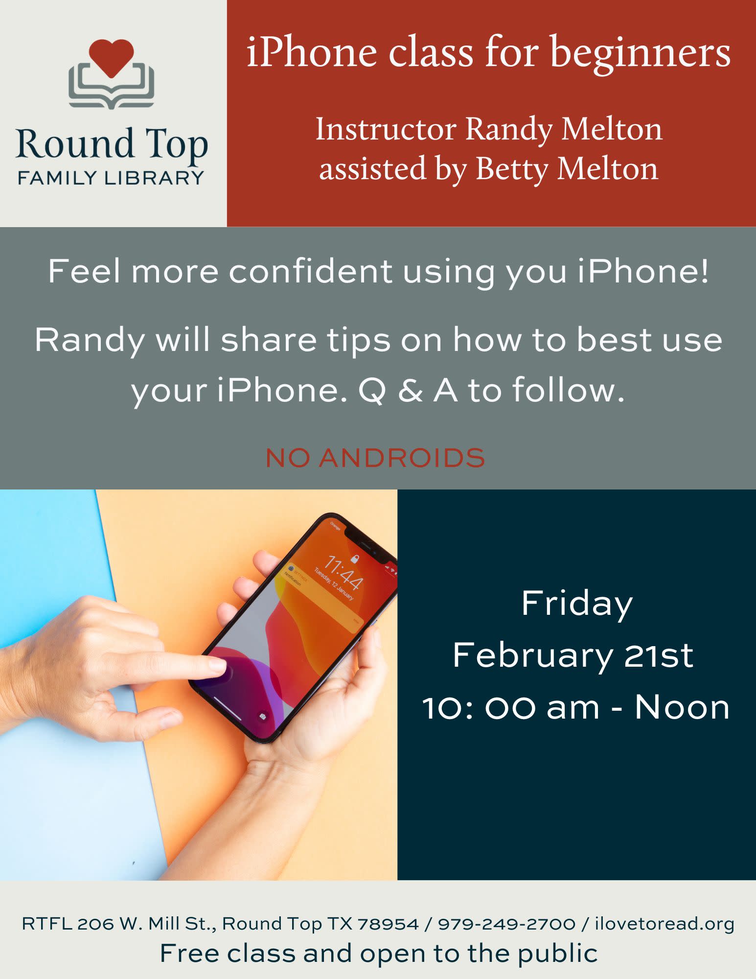 iPhone Class for Beginners in Round Top